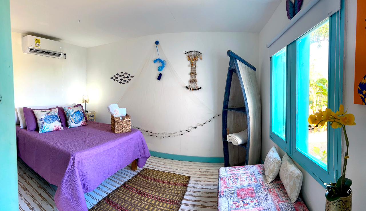 Es nuestra habitación más pequeña pero de las más acogedoras, te levantarás con una increíble vista al mar o rodeada de la naturaleza dependiendo de la casa que elijas. Es una muy buena opción si viajas a Providencia solo/a o con tu pareja o un amigo/a.